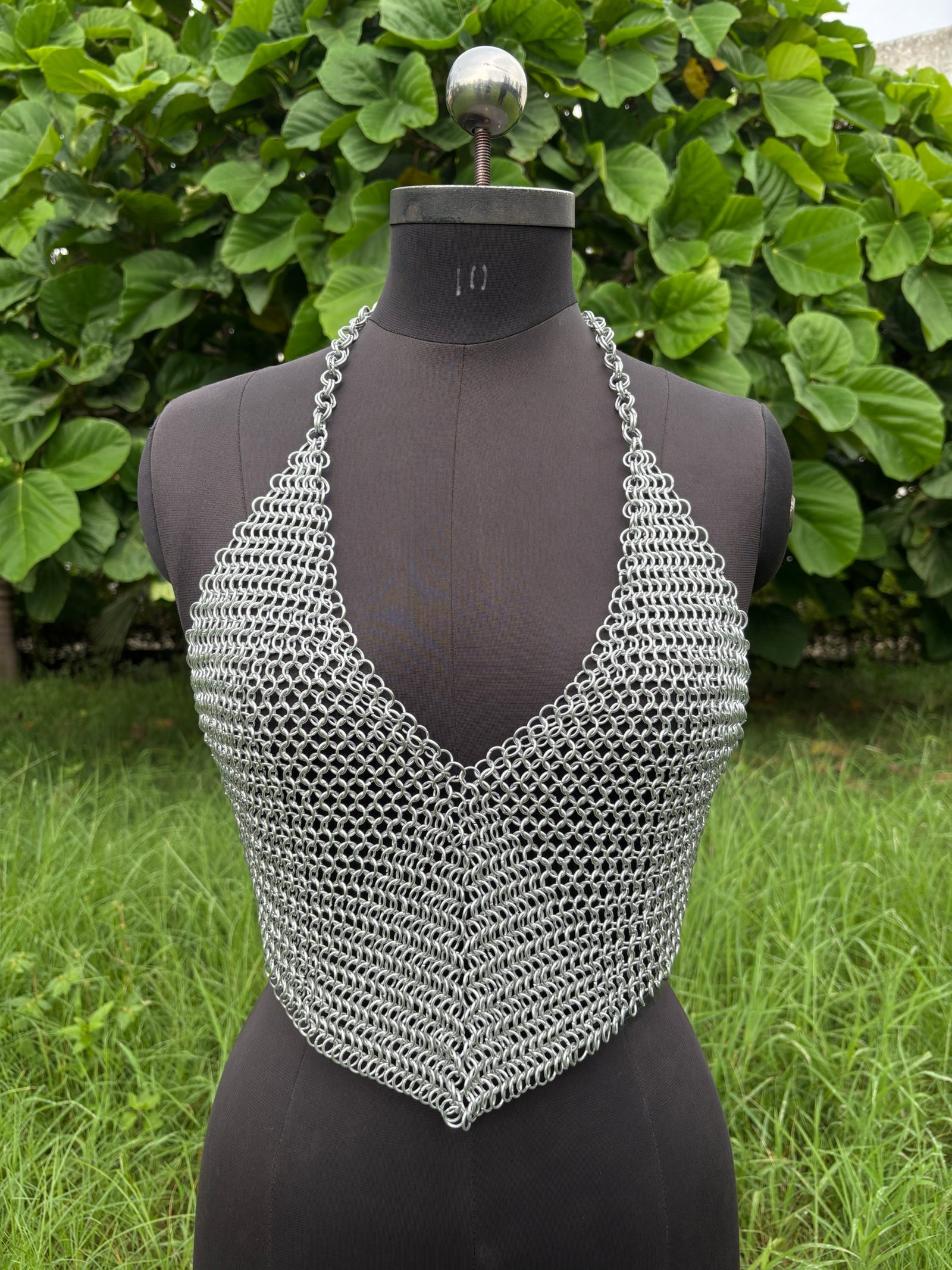 Fashionable Medieval Aluminum Butted 9 mm 16 Gauge Chainmail Top For Women